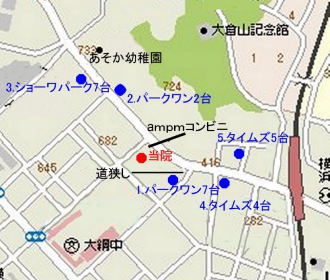(渋谷より24分程 特急利用 -菊名乗り換え1駅戻る、急行、綱島乗り換え1駅で大倉山)
